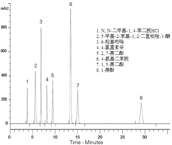 色譜柱:ACE Excel C18-Amide 5μm 250×4.6mm(貨號(hào):EXL-1212-2546U)